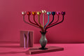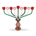 This Menorah is specially designed to support normal wax candles up to 1.6cm diameter, liquid or solid oil cup inserts.